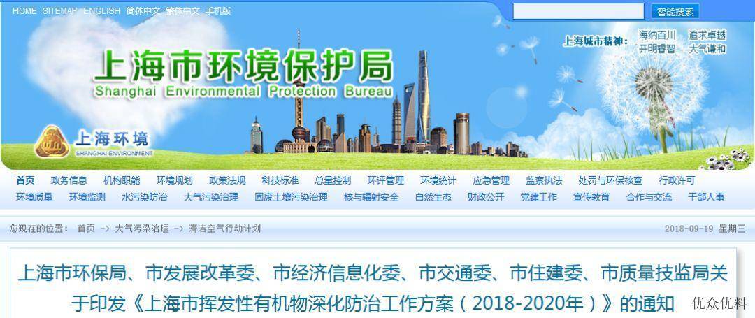 上海環(huán)境保護(hù)局發(fā)布2018年-2020年揮發(fā)性有機(jī)物深化防治工作解決方案[2018-11-4]